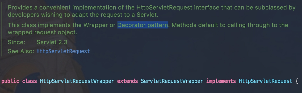 이 데코레이터를 상속받는 클래스를 만들어서WebFilter를 거쳐가는 모든 요청이 이 데코레이터의 하위 클래스를 거쳐가게 된다.