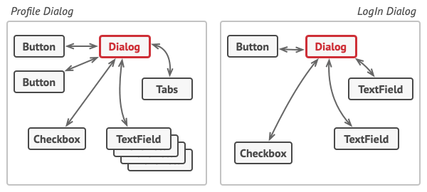 아예 모든 의존성을 Dialog에서 가지고 각 패턴마다 어떤 상황에 따라서 특정 행동을 할 수 있게끔 각 컴포넌트별로 이벤트를 전달하거나 값을 전달하는 방식으로 처리하면 훨씬 관리할 것들이 줄어서 편리하다.